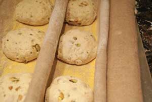 - When all six flowers have been shaped, cover or slip the couche into a plastic bag. Proof for about one hour, until the dough springs back very slowly when gently pressed with a finger. The flowers may seem like they have only minimally expanded.